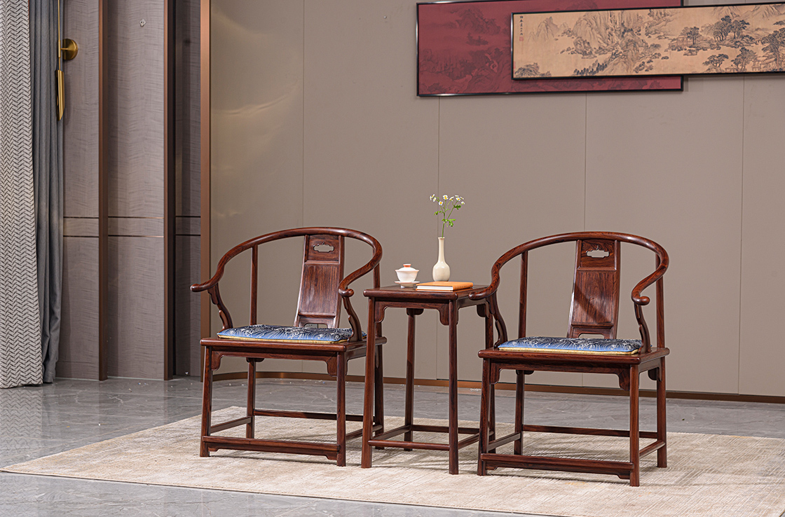 巧妙融合傳統與現代,上圓下方的造型蘊含天地和諧之哲學,整體線條流暢柔美,盡顯中式家具的靈動與雅致,榮獲“金匠獎”中式紅木家具·精品工藝獎榮譽。